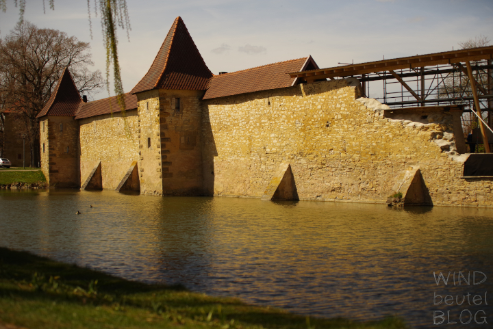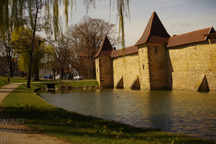 [Anmerkung der Leinenträger: 2023 stürzte ein Teil der Weißenburger Stadtmauer in den Seeweiher. Seither wird der Wehrgang darüber abgestützt.]
