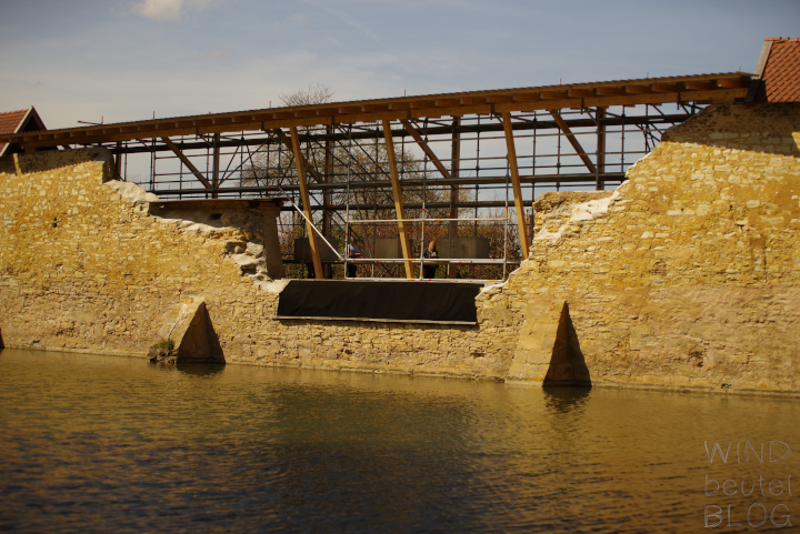 Plötzlich steht die Endlosburg im Wasser, am Wasser oder unter Wasser?! Eine tolle Idee war das wohl von damaligen Baumeistern nicht, denn es ist gleich ein riesiges Stück aus der Burg heraus gebrochen.