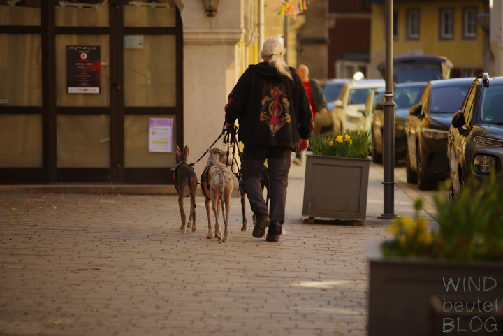 Bis hierher war das alles wirklich ganz spannend, aber mitten durch die Stadt zurück, dass war Ely und Manu dann doch etwas unangenehm. Nebenbei meinte Ely aber, sie müsste jede Gastwirtschaft und jedes Café besuchen. Vielleicht hätte sie eine Kaffeepause braucht?! Nach Kulinarik stand den Leinenträgern aber nicht der Sinn – daher ging es über den belebten Marktplatz zurück zur Blechkutsche.